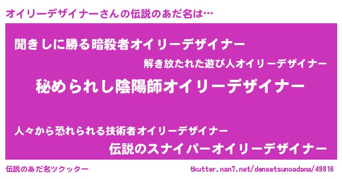 | ファンタジー風あだ名 | 『エターナルオイリーデザイナーー』 |