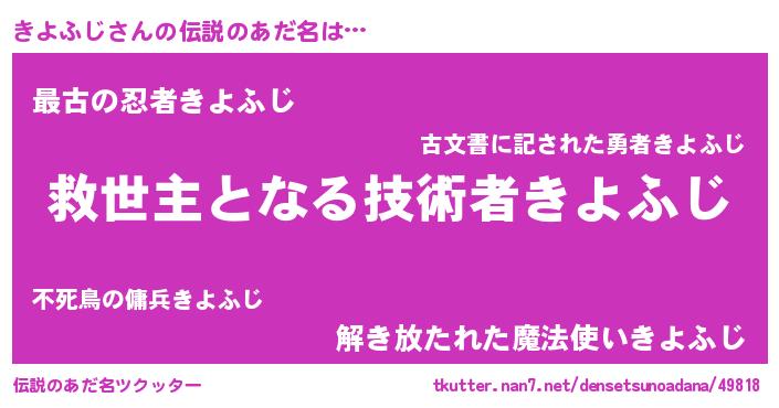 | ヒーロー風カッコイイあだ名 | 『慈愛の使者きよふじ』『暗黒騎士キヨ』 |