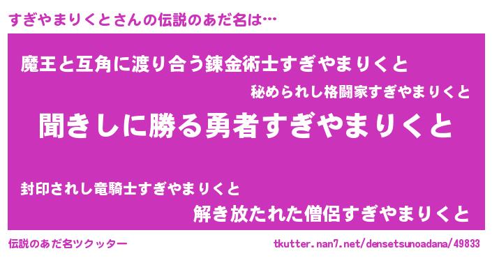 | 意味不明あだ名 | 『永久保存すぎやまりくと』 |