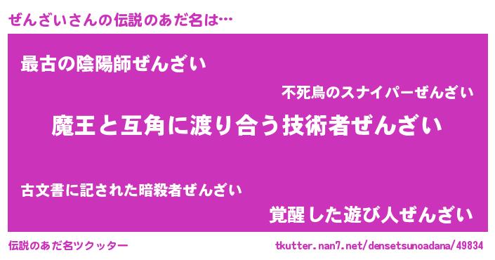 | ヒーロー風カッコイイあだ名 | 『愛の使者ぜんざい』『最強戦士ゼンザイ』 |