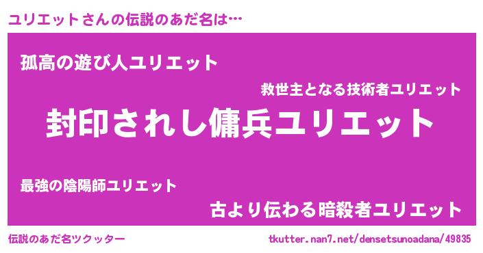 | 胡散臭い通販商品みたいなあだ名 | 『億万長者になれる水晶球…その名も「ユリエット」』 |