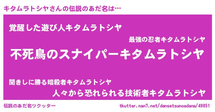 | ヒーロー風カッコイイあだ名 | 『スーパーキタムラトシヤ』 |