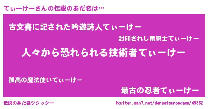 | ヘコむあだ名 | 『てぃーけー(笑)』『酢こんぶ』 |