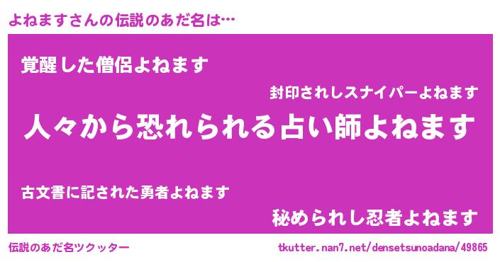| ヒーロー風カッコイイあだ名 | 『正義の使者よねます』『暗黒騎士ヨネ』 |