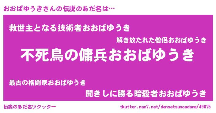 | 女子向けラノベタイトル風あだ名 | 『おおばゆうき姫と円卓の騎士』 |