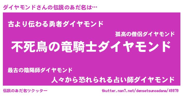 | 男性向けラノベタイトル風あだ名 | 『この素晴らしい世界にダイヤモンドを!』 |
