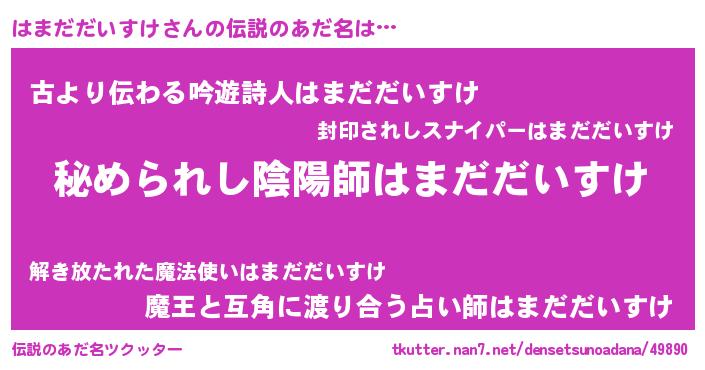 | 意味不明あだ名 | 『住所不定無職はまだだいすけ(85歳)』 |