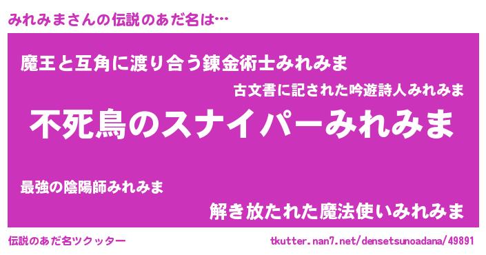 | ヒーロー風カッコイイあだ名 | 『スーパーミレミマ』『愛の使者みれみま』 |