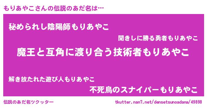 | ヘコむあだ名 | 『豆乳』『もりふぇ~』『もりぷりん』 |