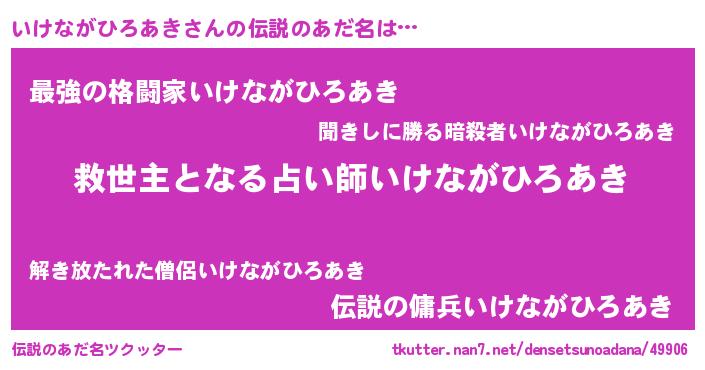 | 意味不明あだ名 | 『ニラ科いけながひろあき属』 |