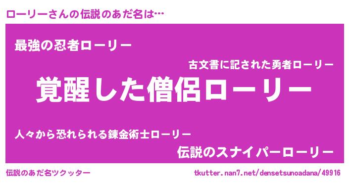 | 男性向けラノベタイトル風あだ名 | 『ローリーの嫁は女の子じゃないと思った?』 |