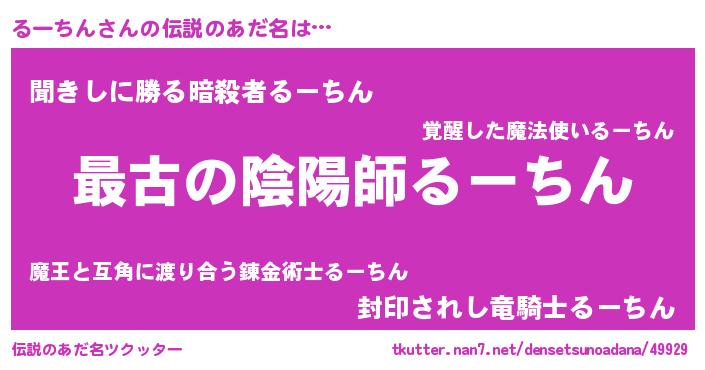 | 男性向けラノベタイトル風あだ名 | 『転生したらるーちんだった件』 |
