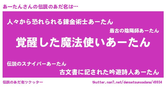 | ヒーロー風カッコイイあだ名 | 『炎刃騎士アー』『正義の使者あーたん』 |