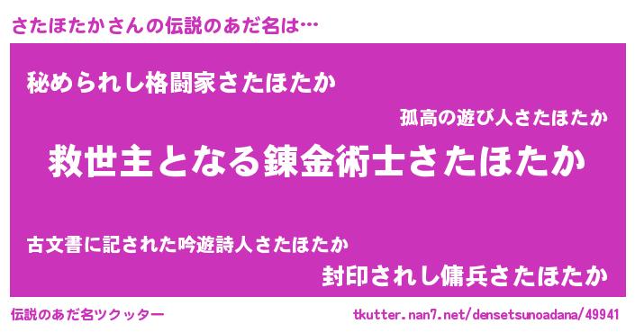 | 意味不明あだ名 | 『ニラ科さたほたか属』『自称さたほたか』 |