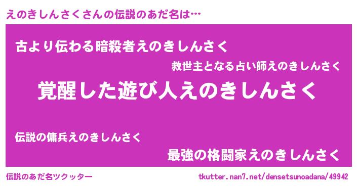 | 意味不明あだ名 | 『とにかく怪しいえのきしんさく』 |