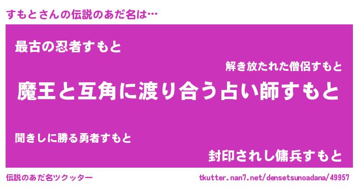 | 女子向けラノベタイトル風あだ名 | 『闇のすもと』『死神すもとの再婚』 |