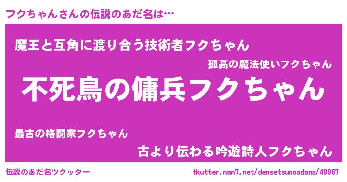 | ヘコむあだ名 | 『フクもー』『フクちゃん(小並感)』 |