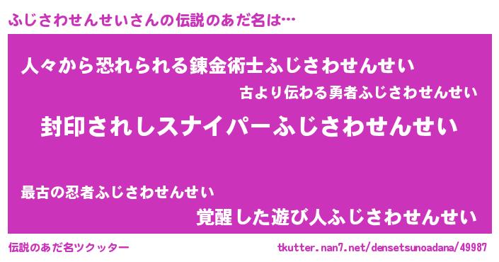 | 男性向けラノベタイトル風あだ名 | 『フジサワセンセイアートオンライン』 |