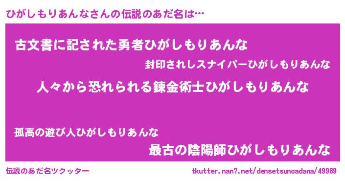 | 肩書あだ名 | 『ひがしもりあんな総統』 |
