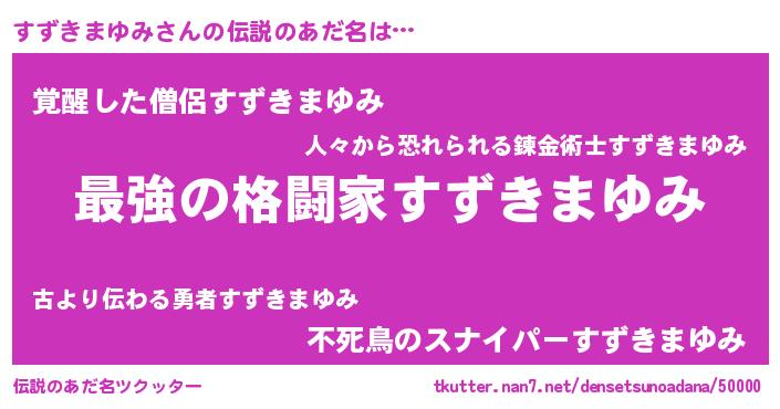 | 意味不明あだ名 | 『住所不定無職すずきまゆみ(11歳)』 |