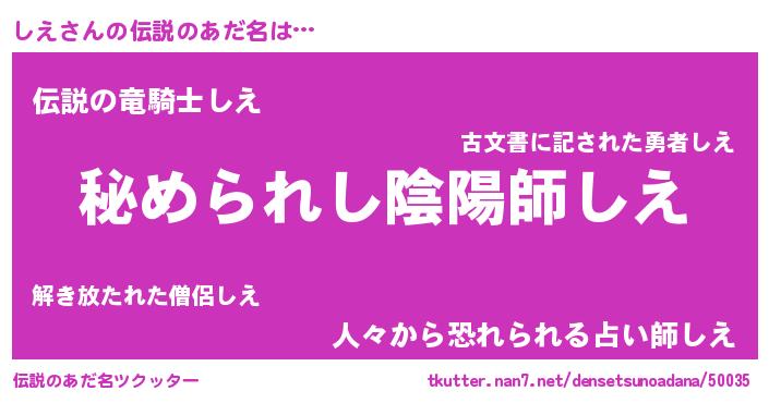 | ヒーロー風カッコイイあだ名 | 『ウルトラしえマン』『スーパーシエ』 |