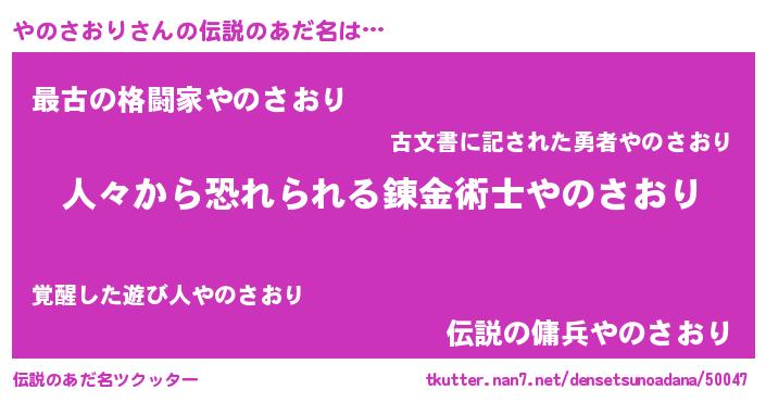 | ヒーロー風カッコイイあだ名 | 『友情の使者やのさおり』 |