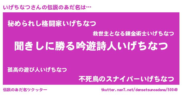 | 意味不明あだ名 | 『永久保存いげちなつ』 |