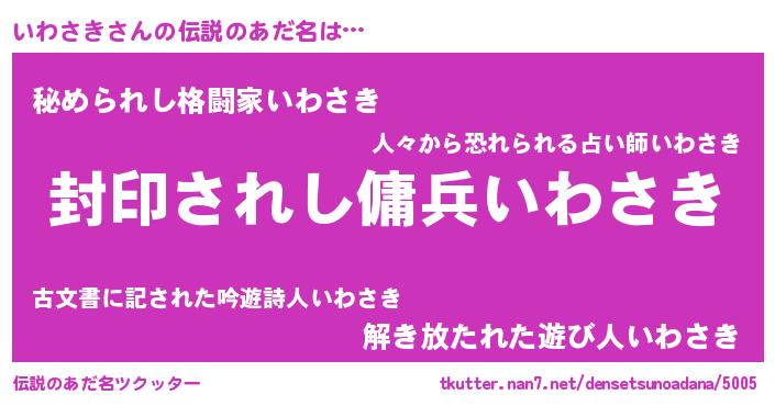 | 市区町村名 | 『名古いわ市』『いわ田谷区』 |