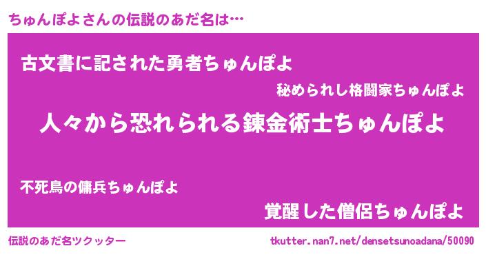 | ヘコむあだ名 | 『ちゅんぽよ(遠い目)』『ちゅぷりん』 |