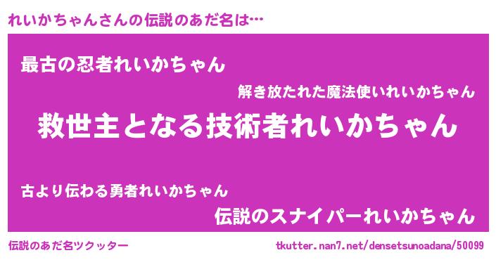 | 男性向けラノベタイトル風あだ名 | 『ノーゲーム・ノーレイカチャン』 |