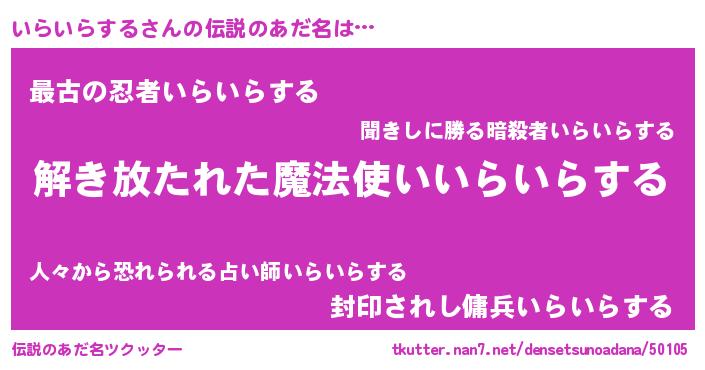 | ヒーロー風カッコイイあだ名 | 『仮面イラダー』『幻影騎士イラ』 |