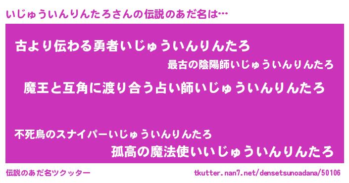 | ヘコむあだ名 | 『いじゅういんりんたろ(爆)』『いじを』 |