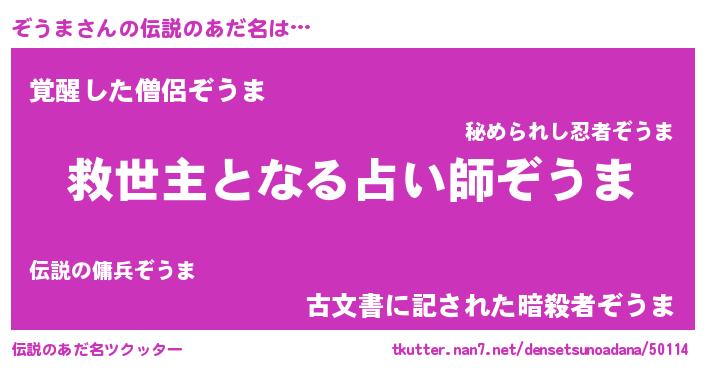 | 男性向けラノベタイトル風あだ名 | 『ノーゲーム・ノーゾウマ』 |