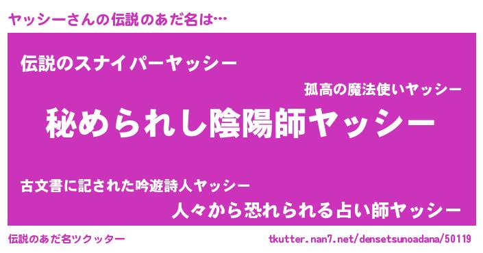 | 男性向けラノベタイトル風あだ名 | 『やはりヤッシーの青春ラブコメはまちがっている 』 |