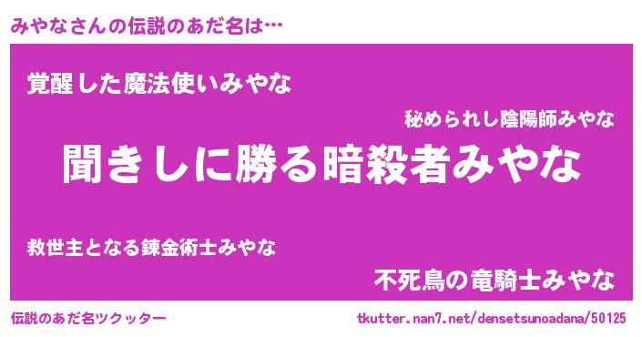 | ヒーロー風カッコイイあだ名 | 『ネオミヤナ』『幻影騎士ミヤ』 |
