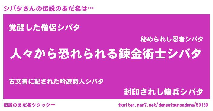 | ヒーロー風カッコイイあだ名 | 『正義の使者シバタ』『幻影騎士シバ』 |