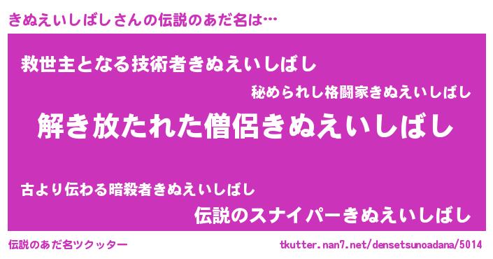 | 意味不明あだ名 | 『自称きぬえいしばし』 |