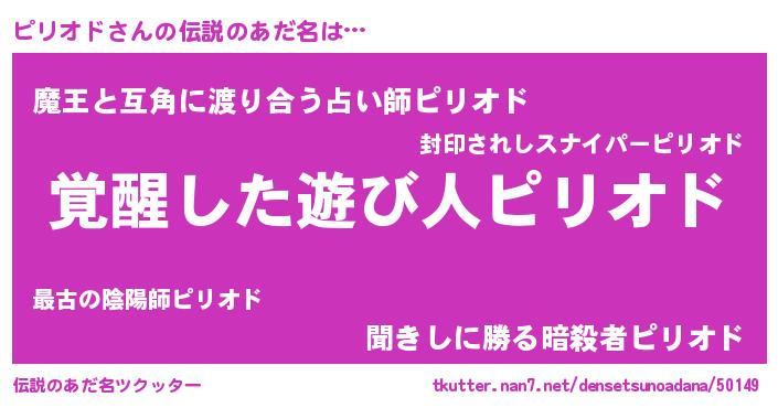 | ヒーロー風カッコイイあだ名 | 『天弓騎士ピリ』『愛の使者ピリオド』 |