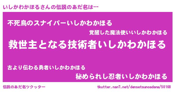 | ヒーロー風カッコイイあだ名 | 『慈愛の使者いしかわかほる』 |