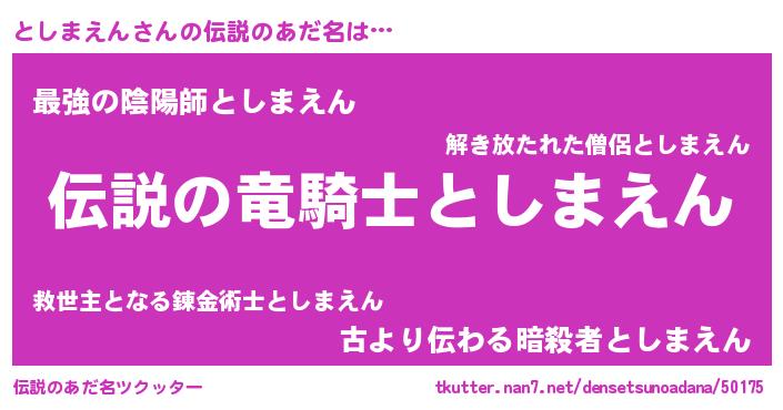 | ヒーロー風カッコイイあだ名 | 『超時空戦士トシマエン』『仮面トシダー』 |