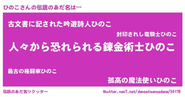 | 意味不明あだ名 | 『住所不定無職ひのこ(84歳)』『自称ひのこ』 |