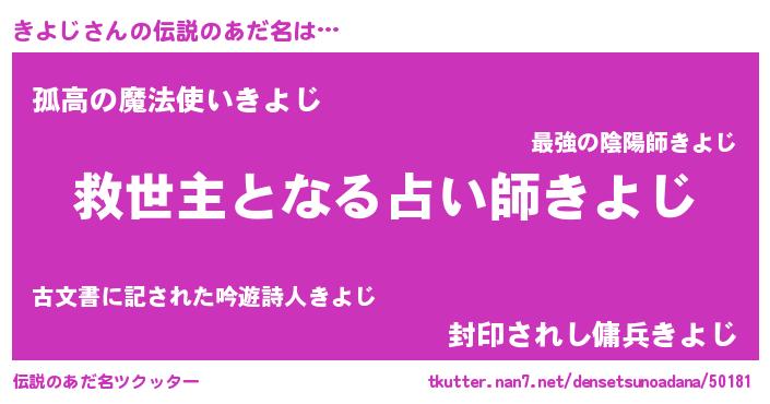 | ヒーロー風カッコイイあだ名 | 『天空の使者きよじ』『黄金騎士キヨ』 |