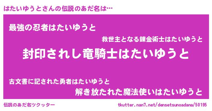 | 男性向けラノベタイトル風あだ名 | 『ハタイユウトアートオンライン』 |
