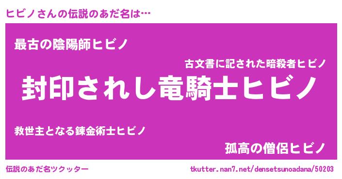 | ヒーロー風カッコイイあだ名 | 『スーパーヒビノ』『ウルトラヒビノマン』 |
