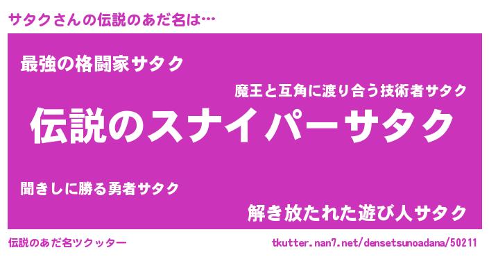 | 胡散臭い通販商品みたいなあだ名 | 『必ず成功する霊験あらたかなお札…その名も「サタク」』 |