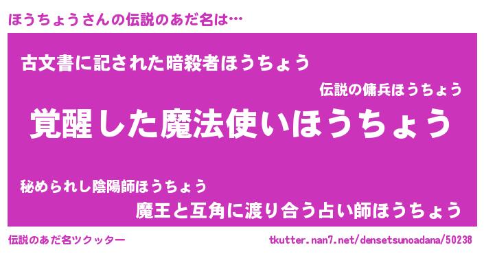 | 意味不明あだ名 | 『とにかく怪しいほうちょう』 |