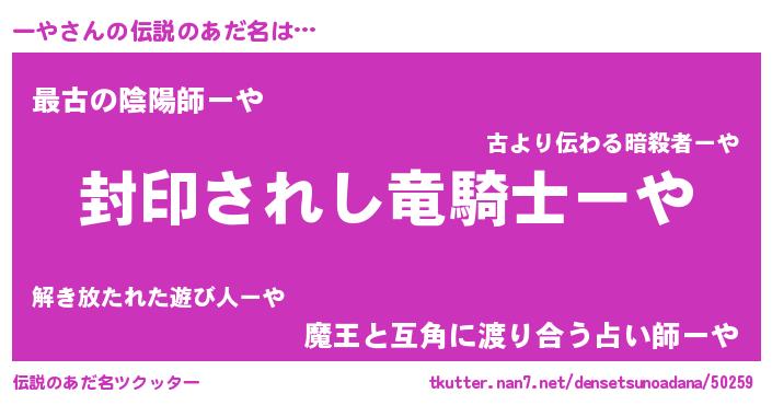 | 男性向けラノベタイトル風あだ名 | 『ーや~年齢イコール彼女いない歴の魔法使い~』 |