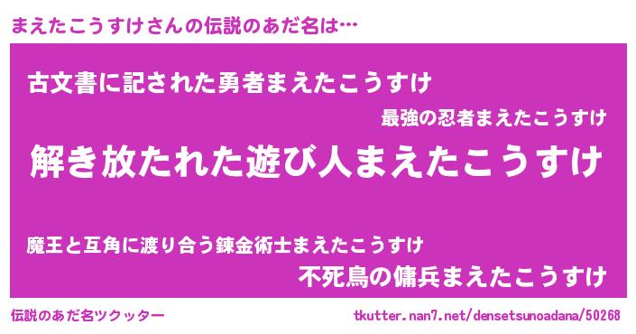 | ヒーロー風カッコイイあだ名 | 『サイバー戦士マエタコウスケ』 |