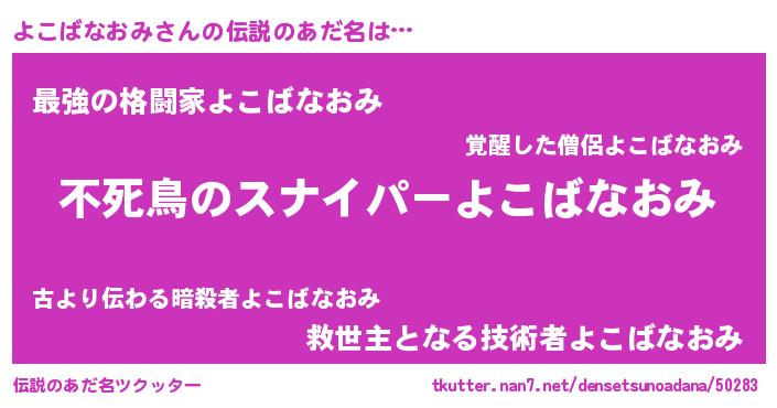 | 意味不明あだ名 | 『住所不定無職よこばなおみ(71歳)』 |