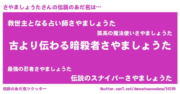 | 意味不明あだ名 | 『自称さやましょうた』 |